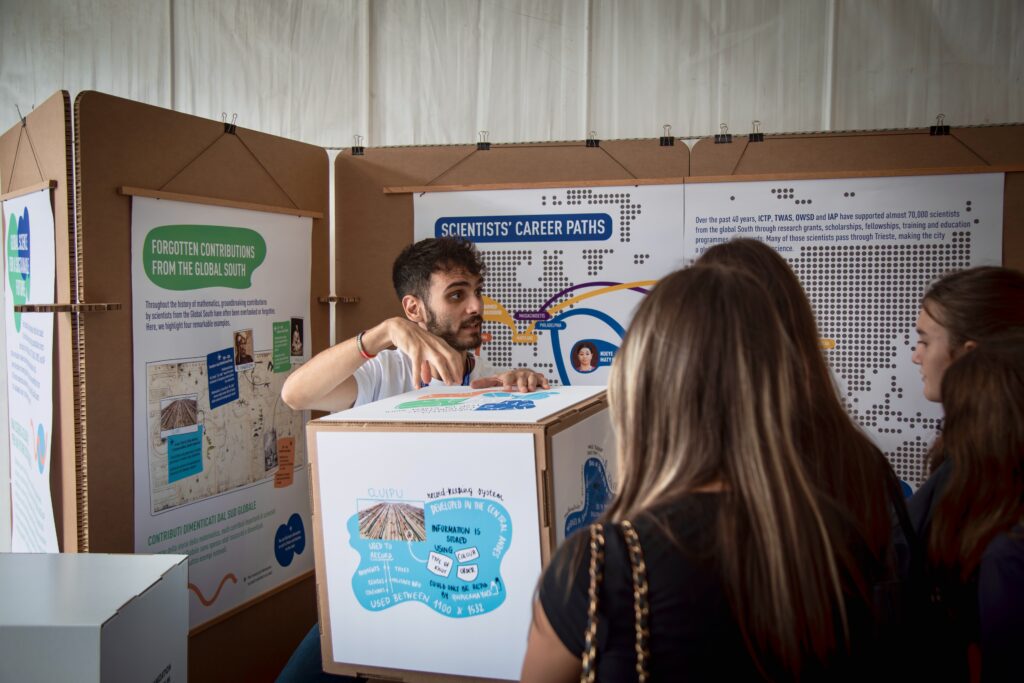 Historical figures from the Global South like Brahmagupta or Al-Khwarizmi developed many of the fundamental concepts that are used in nowadays mathematics. Yet, their names and stories are often forgotten. As part of ICTP‘s stand at Trieste Next, I have developed four visual summaries of mathematical contributions from the Global South. They were displayed on a cube, so that visitors could interact with them.